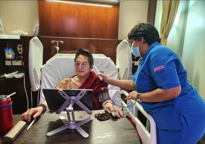 晒出的照片,除了护士,倒是没有看到利智和他孩子们的身影。